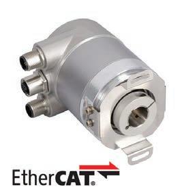 Posital’s IXARC optical ro tary encoders are available with EtherCAT communica tions interfaces. These absolute optical rotary encoders feature resolution of up to 65,536 steps per turn (16 bits), and multi-turn models with measuring ranges as large as 16,384 revolutions. The EtherCAT interface, which was implemented using fast FPGA circuits, provides cycle times of less than 125 microseconds, while the distributed clock func-