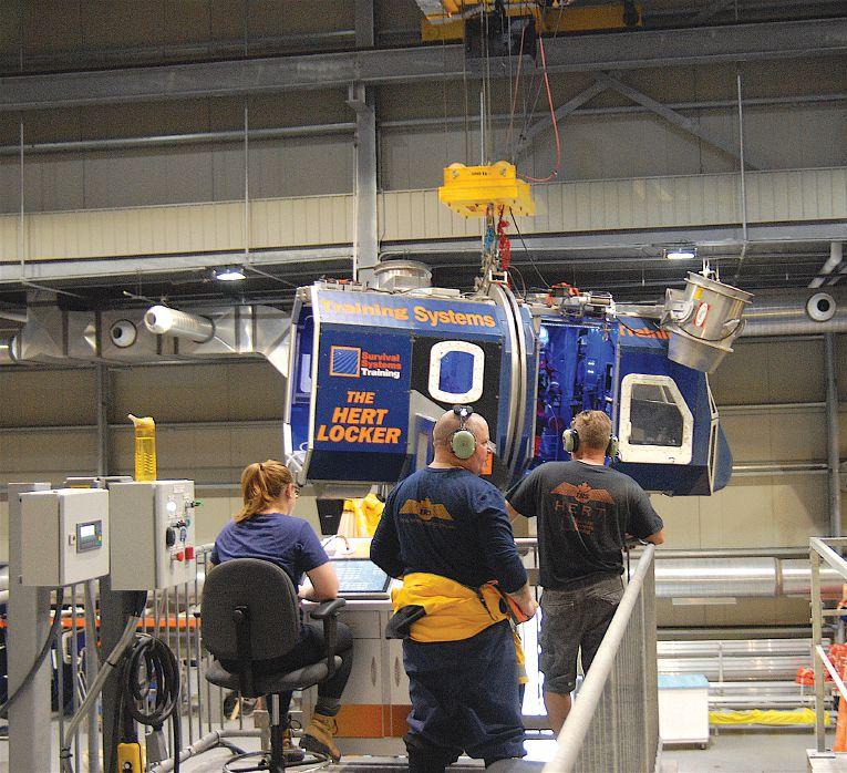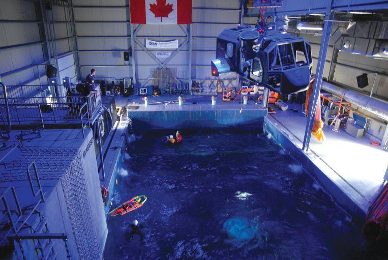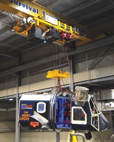 Learning how to survive a helicopter ditching into the ocean is best done under realistic conditions. In aid of this goal, Survival Systems Training Limited (SSTL) in Dartmouth, N.S. dunks trainees in a helicopter trainer, suspended from a specially designed hoist. Its designers left no room for failure.