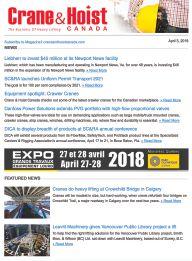 Crane & Hoist Canada is published six times a year by Annex Business Media. Reference to named products or technologies does not imply endorsement by the publisher. A subscription to Crane & Hoist Canada (six issues) is $36 per year in Canada. For subscriptions in the USA the price is $36 USD. Send cheque or VISA/Mastercard number to Subscription Department, Crane & Hoist Canada, 111 Gordon Baker Rd., Suite 400, Toronto ON M2H 3R1. Fax orders to 416-510-6875. Or subscribe online at www.craneandhoistcanada.com
