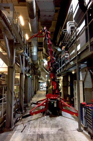 This hoist is suspended under the roof of a 43-metre by 27-metre building, completed in 2014, called the Marine Aviation Survival Training facility (MAST). Mounted on a beam and girders, it can maneuver SSTL’s Helicopter Underwater Egress Training simulator, or HUET, over portions of the poolside deck and the 25-metre by 14-metre by 5-metre deep pool itself. The hoist sits roughly 13 metres above deck level and 14 metres above the pool’s surface.