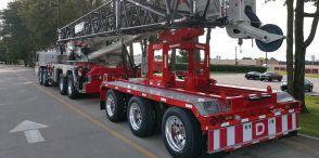 The base crane weighs less than 96,000 pounds, and can get to and from jobsites on a single, low-bed truck with remaining crane components hauled separately on up to four standard trucks.