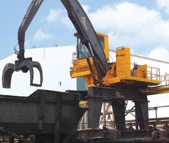 Tanguay rail trolleys can also be used to unload logging trucks from the top to feed into the mill.