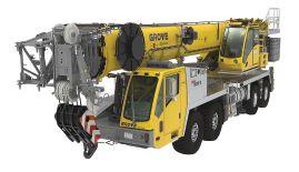 While the Grove TMS9000-2 was already at the lowest GVW in its class, the latest models are now even lighter, at 80,311 pounds for the basic configuration. Thanks to the new carrier and engine, almost 1,000 pounds of excess weight has been trimmed.