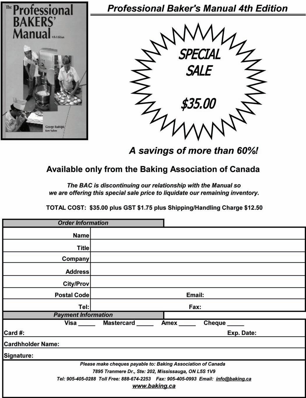 FOR THE BAKING INDUSTRY Tel: (416) 252-4660 Fax: (416) 252-9993