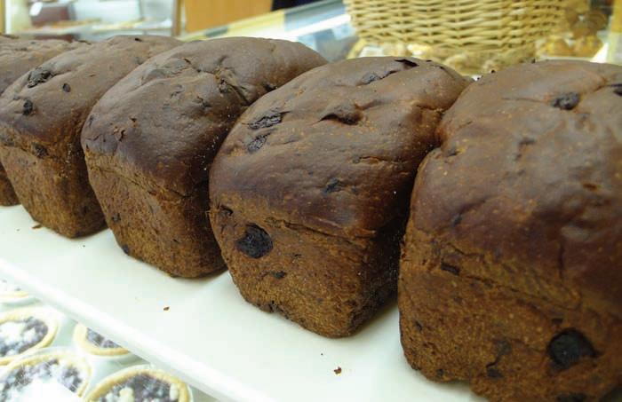 The high percentages of sugar and butter will produce a soft crust and tight crumb, in addition to decreasing the staling time. The sugar is a nice balance to the bittersweet chocolate and cocoa powder. The rum-soaked raisins are deliciously soft and moist and contrast with the chunky chocolate. With a glass of wine or for breakfast with coffee, your customers will love the special treat of this chocolate cherry sourdough bread. / BJ