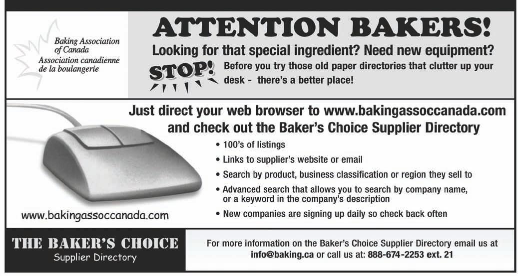 That moment made me thrilled to be with Bakers Journal, which you obviously consider a part of your baking family here in Canada. I look forward to strengthening those ties while doing my very best to ensure the magazine remains “the voice of the Canadian baking industry.” We’re here for you: to promote your businesses, to celebrate your successes, to listen to your frustrations and to share news about trends, issues and new technology that affect you. Let us know how we can help.
