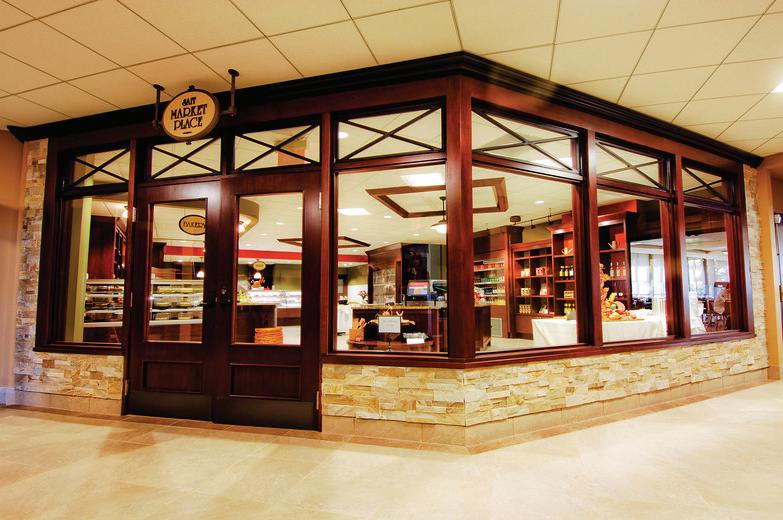 Features include a deli counter that sells meat cuts, a bakery counter displaying artisan bread (delivered fresh twice daily) and fresh baking, and coolers featuring to-go