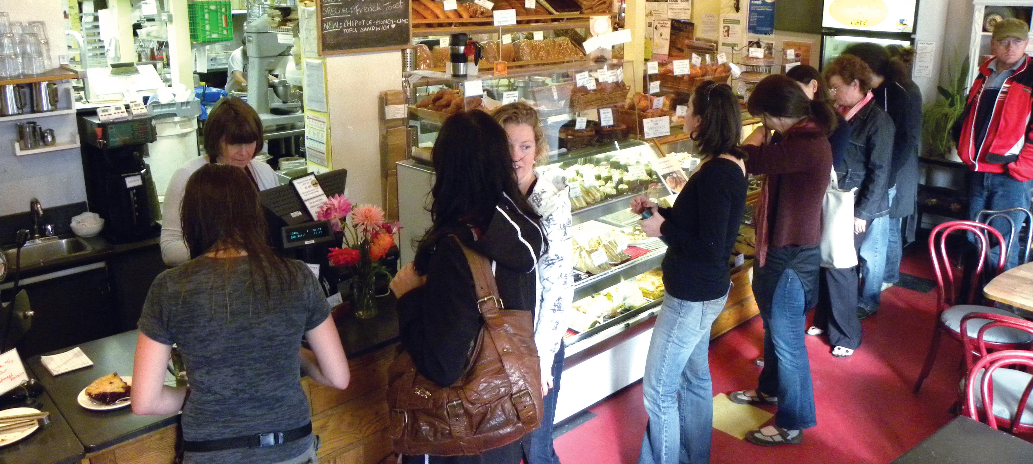 The Market Place at SAIT integrates 100 students from three programs: Baking and Pastry Arts, Professional Cooking, and Meat Operations and Management. The students work together in the space, selling their products, just as they would when they go to work in the community.