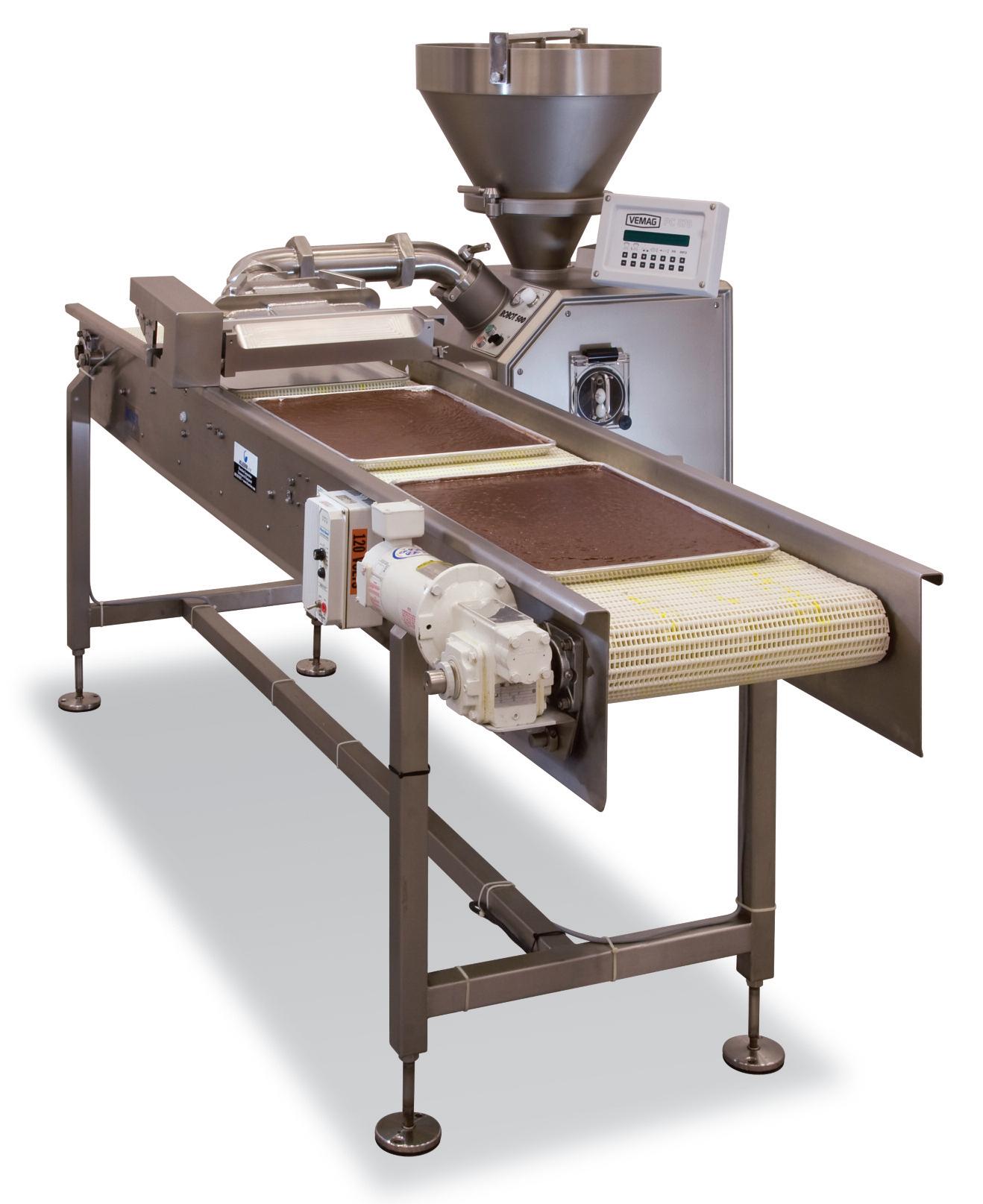 ATRUESTORY: AReisercustomerwasusinga VemagDepositortosuccessfullyportiongourmet cookiesandscones.Shewantedtoexpandintobrownie productsanddecidedtopurchaseapistonfillertodo thejob.Shequicklydiscoveredthelimitationsofthe pistonfiller–thebatterhadtobemadelessviscousto runthroughthemachineanditrequiredhand-spreadingto fillthetraycorners.Realizinghowhappyshewaswithher Vemag,sheaskedReiser’sbakeryspecialiststoengineera solution.TheresultwasaReiser18-inchRotarySheeterthat attachedtotheVemag.Thisheavy-dutydeviceallowedher tomakethebrowniesasthickandchocolateyasshe originallyenvisioned.TheSheeter’sfull-widthextrusion completelyfilledthepan,eliminatingallhandlabor.Itwas theperfectsolution!Hervocalsupportresultedinsalesat otherplantsasshespreadthewordofVemag’sabilityto sheetviscousbattersandcookiedoughs.