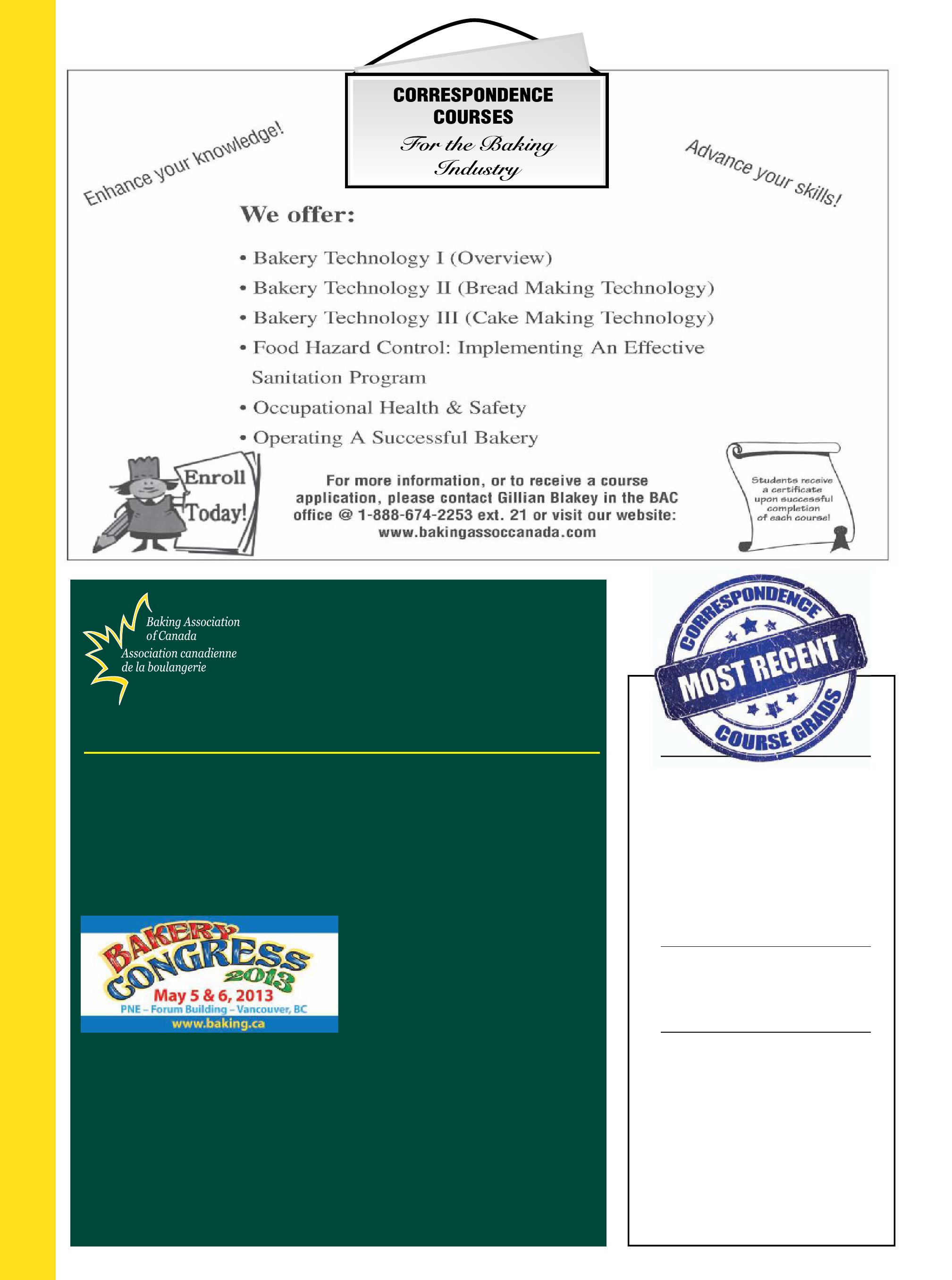 Canada — 1 Year $ 30.00 (with gST $31.50 #867172652rT0001, with hST/ QST $33.90) uSA — 1 Year $ 45.00 uSD Best pricing is available online at www.bakersjournal.com