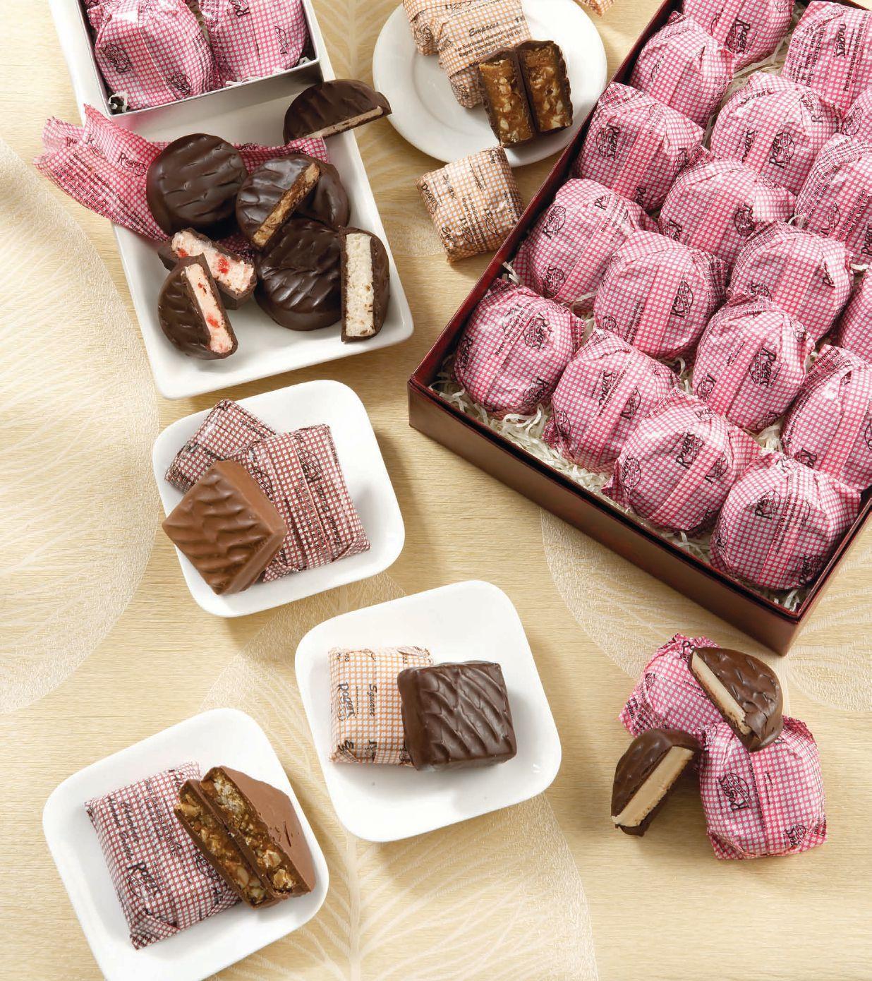 When it comes to popularity, Edwards says, the classic recipes are the clear winners, but new developments have been well received. The Victoria Creams, hand-wrapped in signature pink gingham paper and available in 45-gram and mini sizes, are what the company is famous for. “Right now we have 19 different centre flavours to accommodate different taste buds, like fruit, chocolate, maple and coffee.” Flavour selections depend on the season, of course, with such options