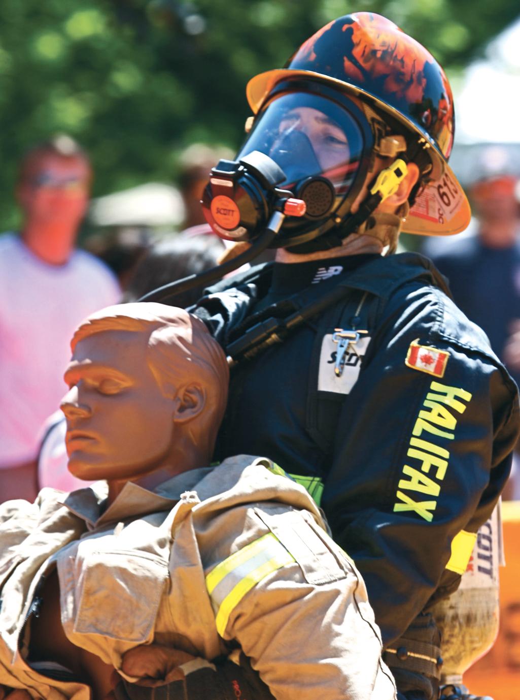 Joe Triff of the Halifax Regional Fire & Emergency Service drags the rescue randy during the Scott FireFit open challenge in Toronto in July. Triff won the men’s individual competition with a time of 1:20:30 at the championships at Quinte West, Ont., in September.