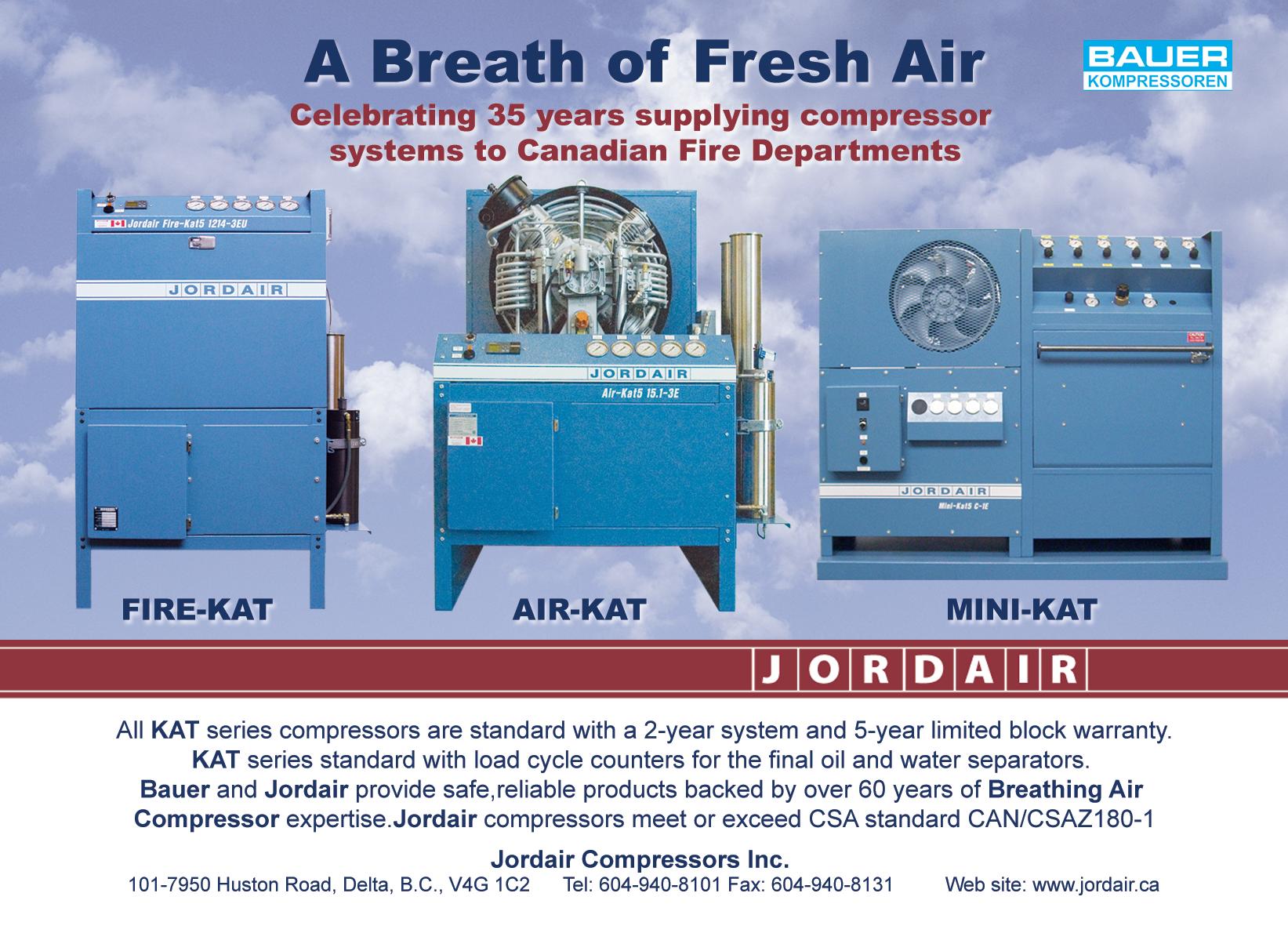 FOR SALE: Used Jordair/Bauer breathing air compressor. IK120 7.5HP 3 stage, capacity 9.3 SCFM. Date of manufacture July 2005, low hours, full low sound enclosure, brand new upgraded purification. Like new condition. Full 1 year warranty. Current Jordair model equivalent FireKat5 120 ultra silent. E-mail bd@adgastech.com for pictures. Phone enquiries toll free 1-866725-7751.