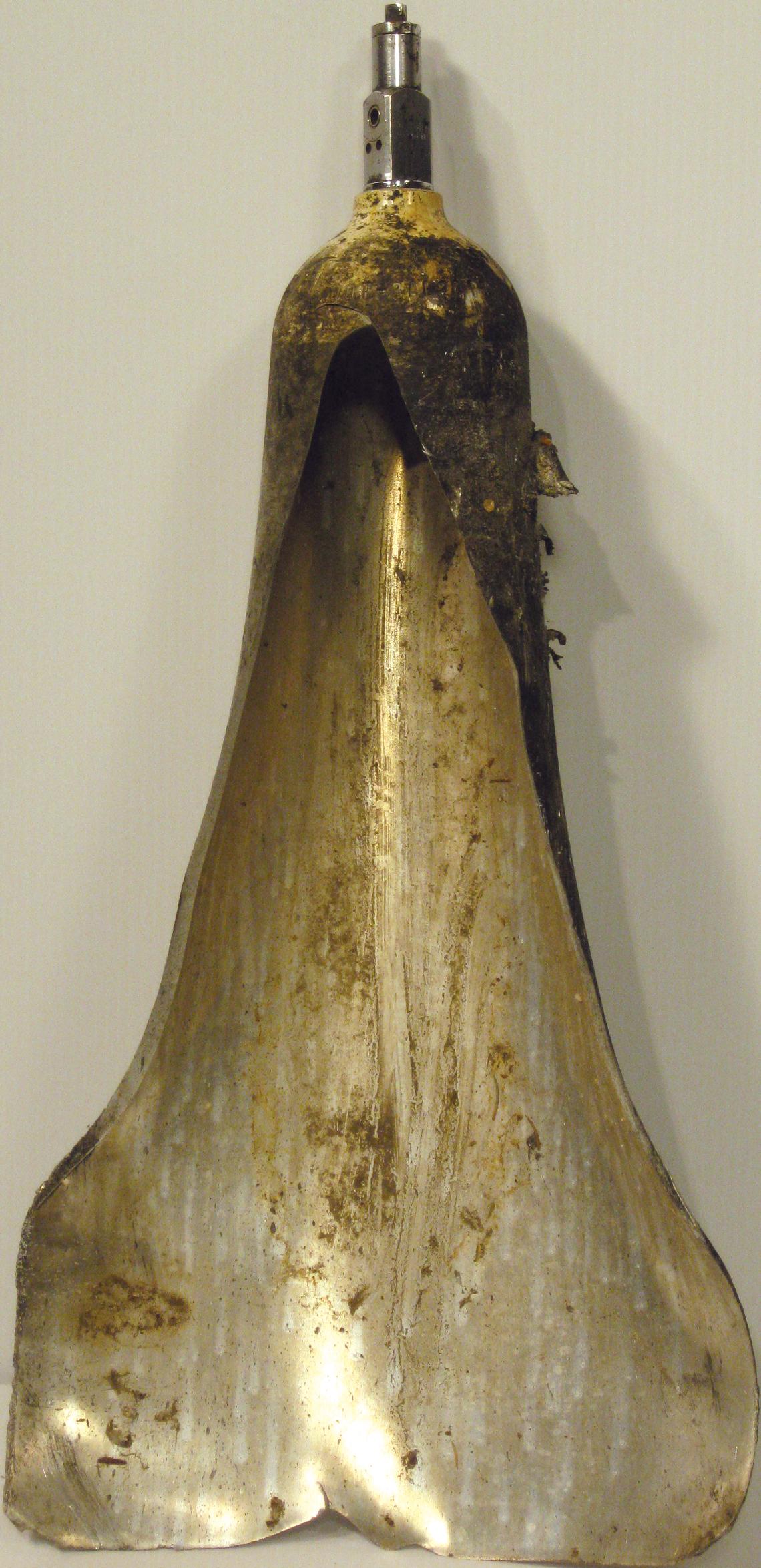 The photo at left, shows the dangers of a BLEVE (Boiling Liquid Expanding Vapour Explosion) in small cylinders. Originally the O2 cylinder was 31 centimetres (12 inches) long. The metal shell is now extended to a length of 101 centimetres (40 inches) and resembles a medieval weapon.