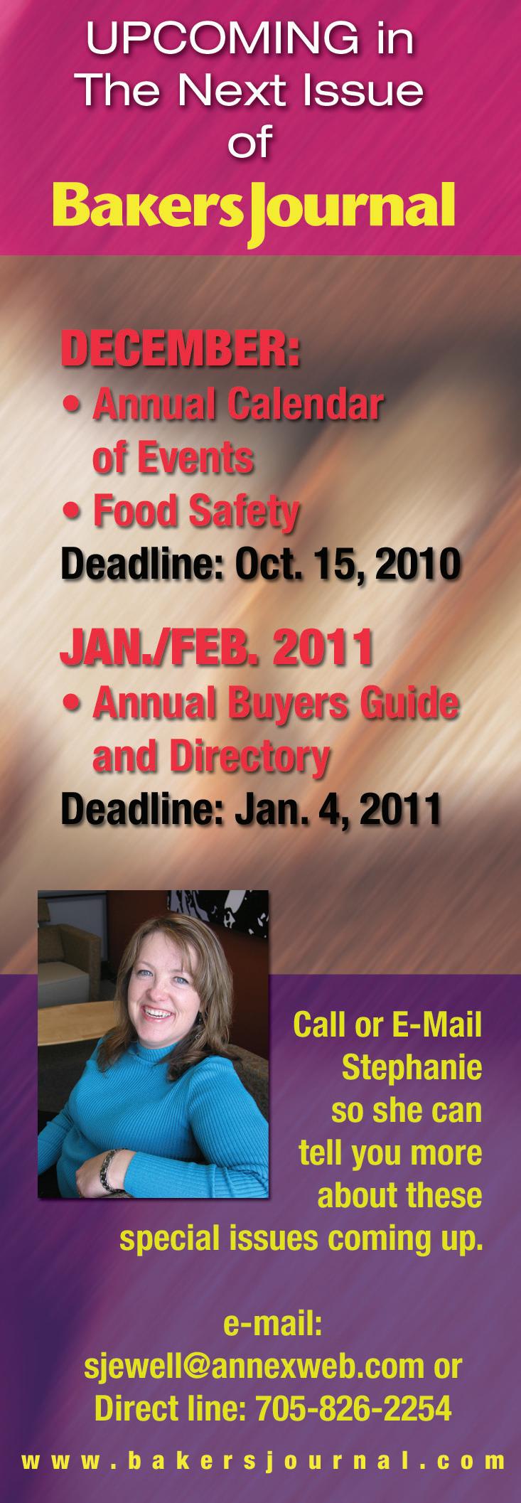 FOR MORE news in the baking world, check out our website, www.bakersjournal.com
