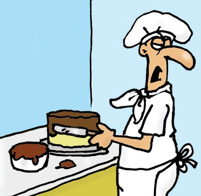 • Too much leavening agent, causing the cake to collapse in the centre;