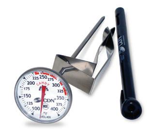 Candy & Deep Fry Thermometer (IrXL400) is designed for use with candy, jelly, deep-frying, yeasts and dough. a colour-coded target range indicator and a large dial make for easy viewing. The IrXL400 has a range of 100 F to 400 F and is designed for easy recalibration. www.cdn-timeandtemp.com