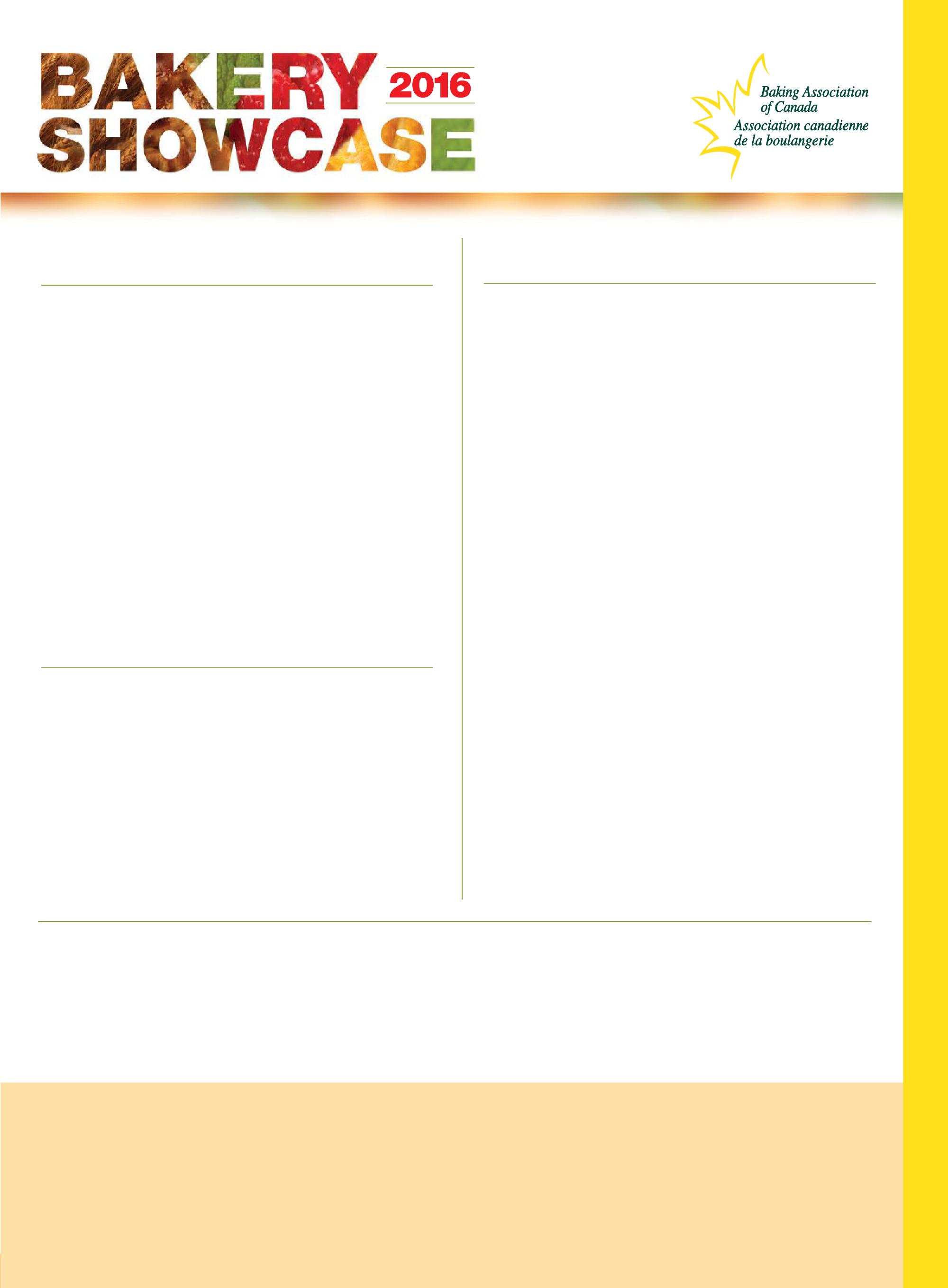 For exhibit space, sponsorship & attending information: Baking Association of Canada Tel: 905-405-0288 / 888-674-2253 info@baking.ca www.baking.ca