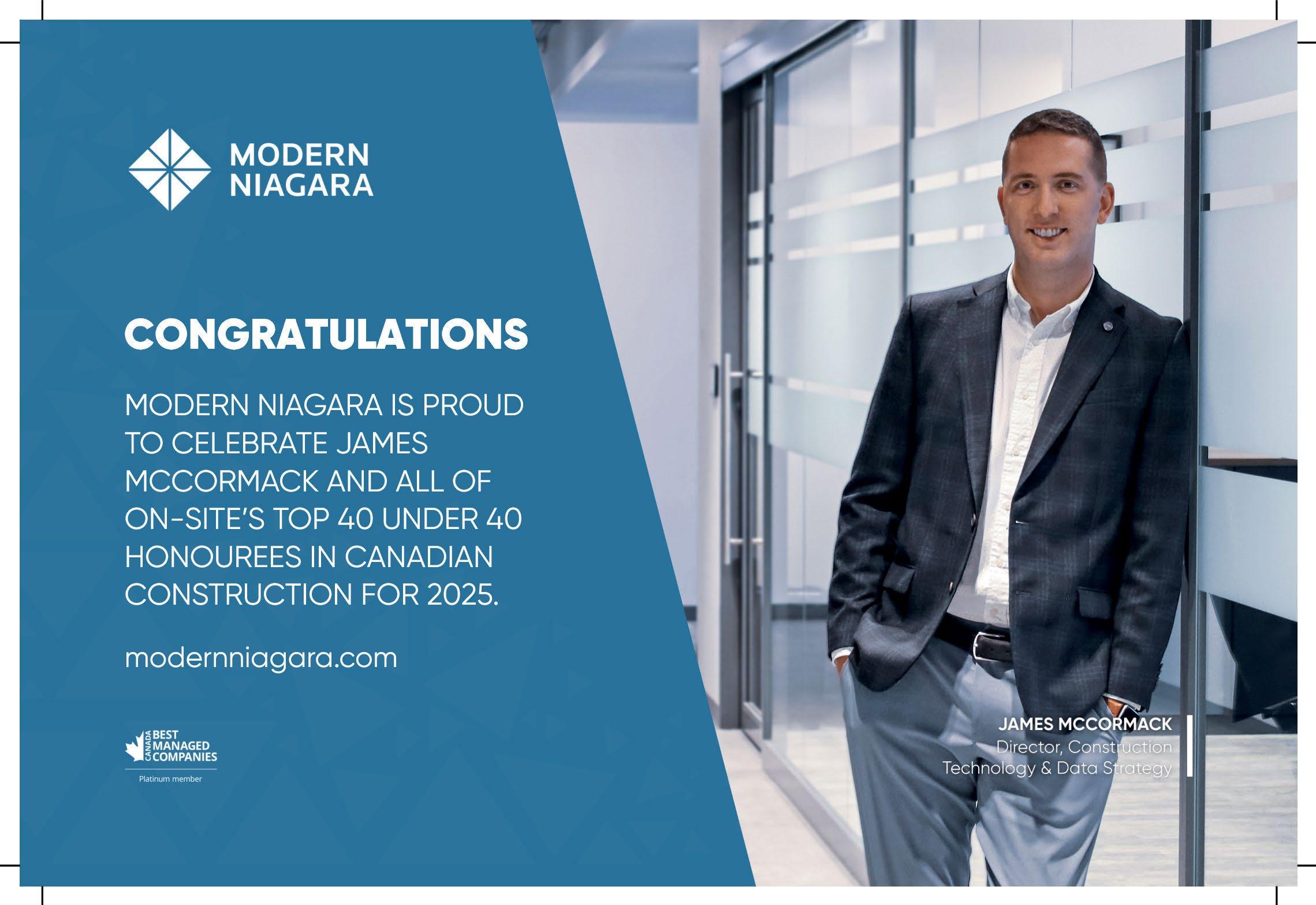 Helping to select our 40 this year were Nadia Todorova of the Residential and Civil Construction Alliance of Ontario, Kenny Leon of the Canadian Construction Association, Jesse Unke of MNP, Joshua Gaglardi of Orion Construction, and Andrew Hansen of SitePartners.