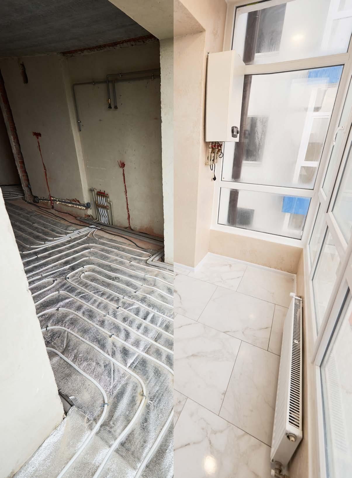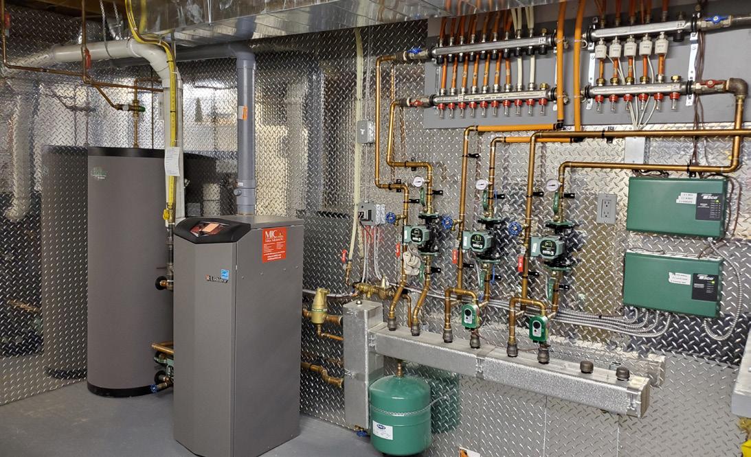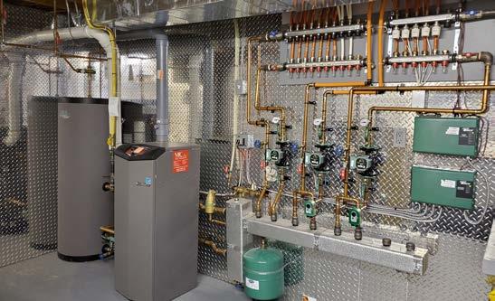 Le réseau de distribution du chauffage des locaux – générant une charge nominale combinée de seulement 29 700 Btu/h – a été séparé en sept zones, dont certaines comportent des panneauxradiateurs simples d’une puissance