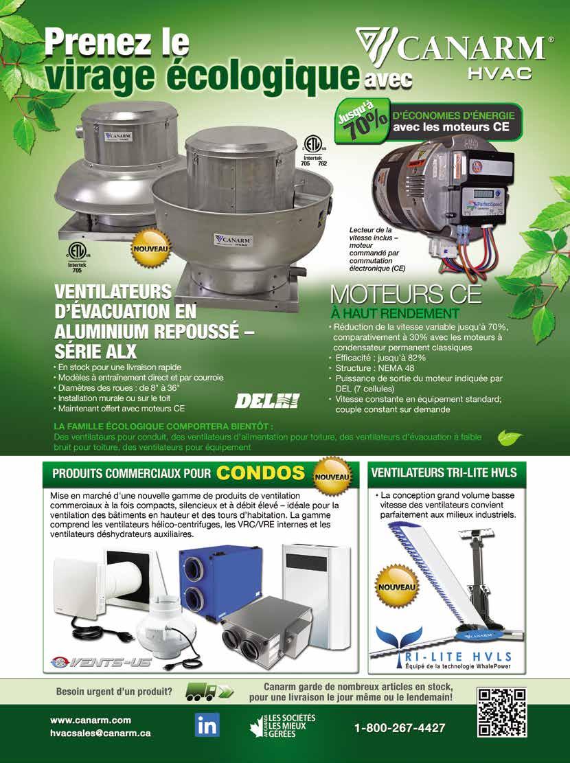 qui accordent la priorité à la santé et au bien-être des occupants. Ce document de 54 pages (offert en français depuis la fin d’octobre) révèle des informations nouvelles sur les facteurs qui influencent les propriétaires de bâtiments, les architectes, les concepteurs, les entrepreneurs et les professionnels de la santé publique dans leurs décisions d’adopter des pratiques et d’utiliser des caractéristiques du bâtiment plus sain. Information additionnelle disponible au www. cagbc.org/CBDCA, sous les onglets « Ressources» puis « Rapport : Des bâtiments plus sains au canada 2016 ».
