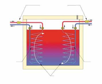 chaleur à contre-courant lorsque deux serpentins – un pour l’apport de la chaleur et l’autre pour son extraction – sont utilisés dans un réservoir thermique non pressurisé.