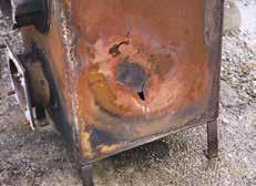 Cet échangeur de chaleur rétro de 1956 comporte un grand trou, probablement le résultat de plusieurs années de projection de flammes. Voilà un grave problème de sécurité.
