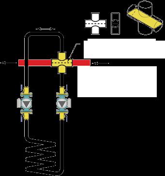 Si le réseau est conçu selon une conception de tuyauterie primaire/secondaire, il est également possible d’inverser le sens d’écoulement à travers un serpentin d’échangeur de chaleur en utilisant un raccord en croix contenant une chicane brasée, tel qu’illustré à la Figure 3
