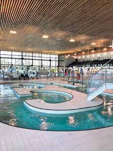 trouve une piscine intérieure, le bon fonctionnement de ce dernier repose néanmoins sur le réseau de distribution d’air. Stantec a conçu un réseau de conduits qui achemine le débit d’air exactement aux bons endroits, incluant les fenêtres et autres surfaces où il est susceptible de se former de la condensation. De plus, la zone « respirable » – où séjournent les occupants – reçoit une certaine quantité d’air frais pour éviter des zones stagnantes. L’équipe a accordé une attention particulière à l’intégration des conduits au plafond en bois de cèdre.