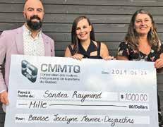 Étudiante au Centre de formation professionnelle Vision 20-20 de Victoriaville, Sandra Raymond a décroché la bourse Jocelyne-MeunierDesjardins 2019 (de 1000 $), décernée annuellement par la Corporation des maîtres mécaniciens en tuyauterie du Québec (CMMTQ) à une étudiante ayant complété au moins 600 heures de cours à temps plein d’un programme menant à l’obtention d’un diplôme d’études professionnelles (DEP) en plomberie et chauffage. Cette démarche fait partie du Programme d’accès à l’égalité des femmes dans l’industrie de la construction de l’organisme. Rappelons que le nom attribué à la bourse se veut un hommage à Jocelyne Meunier-Desjardins, ex-vice-présidente