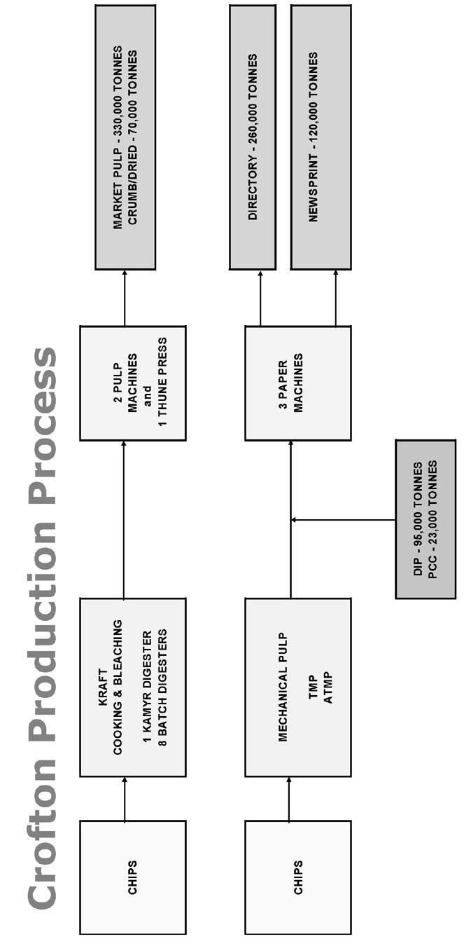 Production Capacity: 235,000 adt/y of NBSK, 125,000 Adt/yr of long fibre and 110,000 adt/y of short fibre.