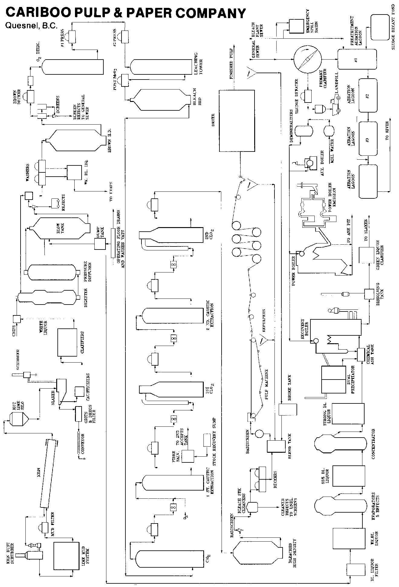 Paper Machines: P.M. #1 & #2: 2 Dominion Engineering 240", 3,300 ft/min (installed 1937), 2 SEW headboxes, 2 Black Clawson Top Flyte formers, 2 SEW Bi-Nip Nipco presses. P.M. #3: 2 Dominion Engineering 47 dryers 60" dia. with 2 uniruns, 1 HHS Valmet former (240" trim/3,600 ft/min), Twinver press section with two cc rolls. P.M. #4: 1 Dominion Engineering 58 dryer 60" dia. with 3 uniruns, 1 Bel-Baie III horizontal (360" trim 3,300 ft/min), Twinver press section with two cc rolls, 1 Beloit 40 dryer 72" dia. with two uniruns.