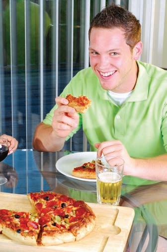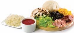 appeal to calorie-conscious customers. Sprinkle smaller amounts of artisan cheeses on top as opposed to the traditional gooey layer of mozzarella cheese. Of course, pizza is traditionally the item of choice for “ordering in” when a family is cocooning at home rather than gallivanting on the town.