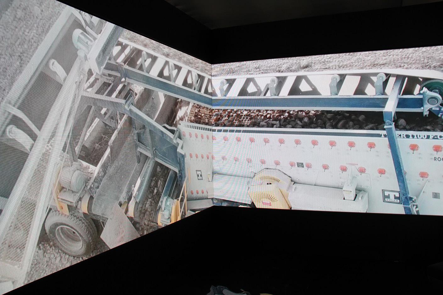 The Silver Lot practically glimmered in the powerful Las Vegas sun. Conveyors towered above the various quarry equipment on display in the outdoor area.