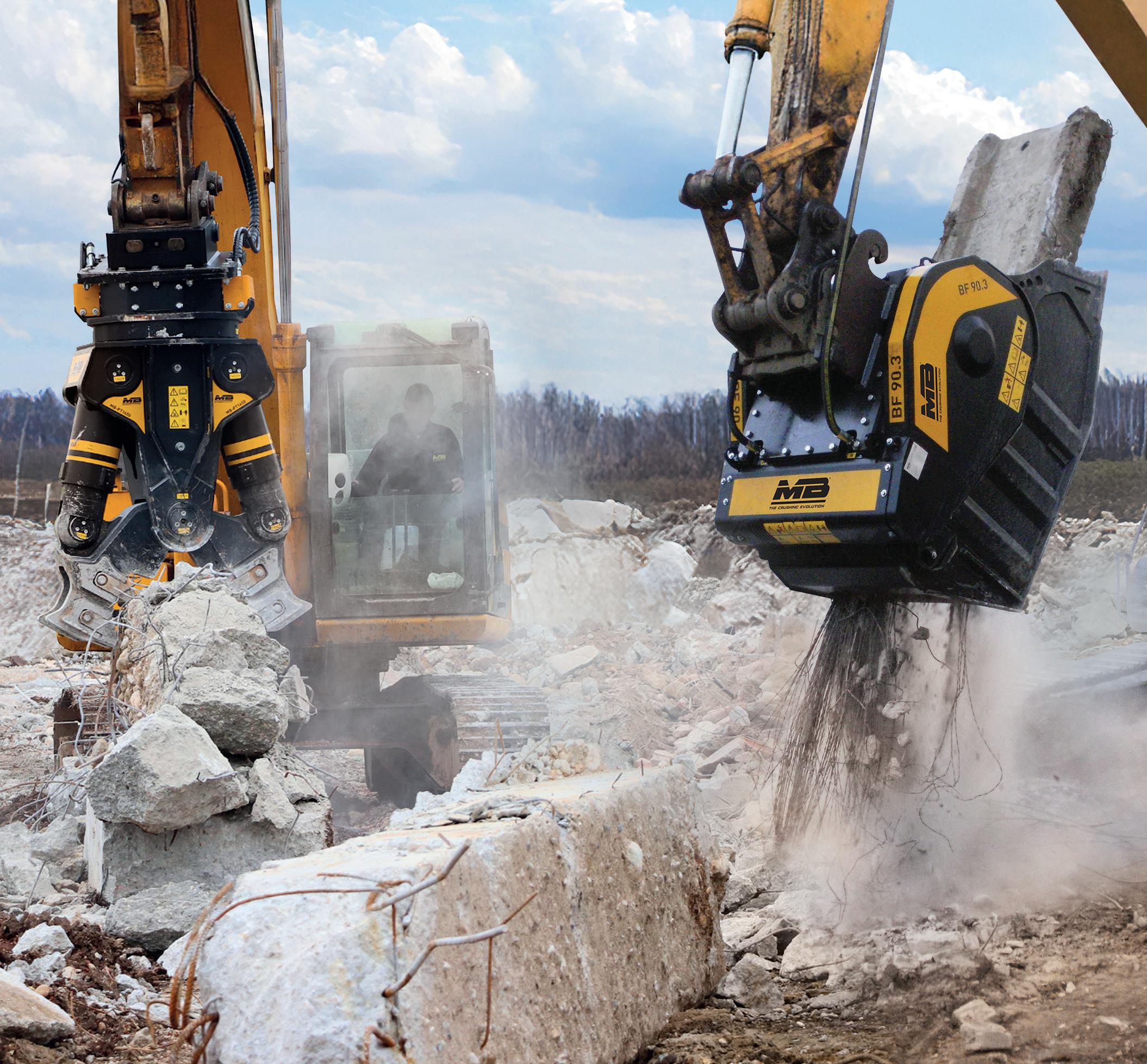 MB Crusher demolition pulverizer and crusher bucket. Demolish. Crush. Recycle.