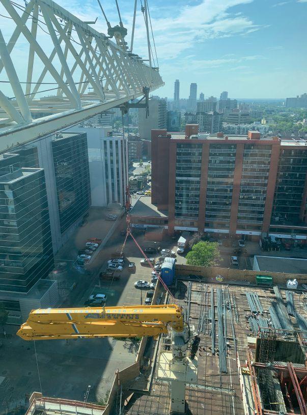 Project: Photos were all taken at a two-condo site at 45 King St. E in Hamilton, Ont., as the crane was being dismantled by Gabrielli Crane Erectors.