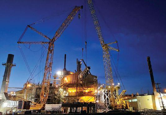 Project: This 297 Tonne boiler was transported from the United States on its side, due to center of gravity and height restrictions, and needed to be rotated upright from the over the road transport for installation. Generally, this process would use several cranes; instead, the Mammoet team used two AT cranes (LTM 1130 & LTM 1220) and a 700 Tonne to perform the rotation, saving time and money for our client. Once the boiler was up righted it was placed onto SPMTs and transported to the foundation where it was Jack & Slide into location.