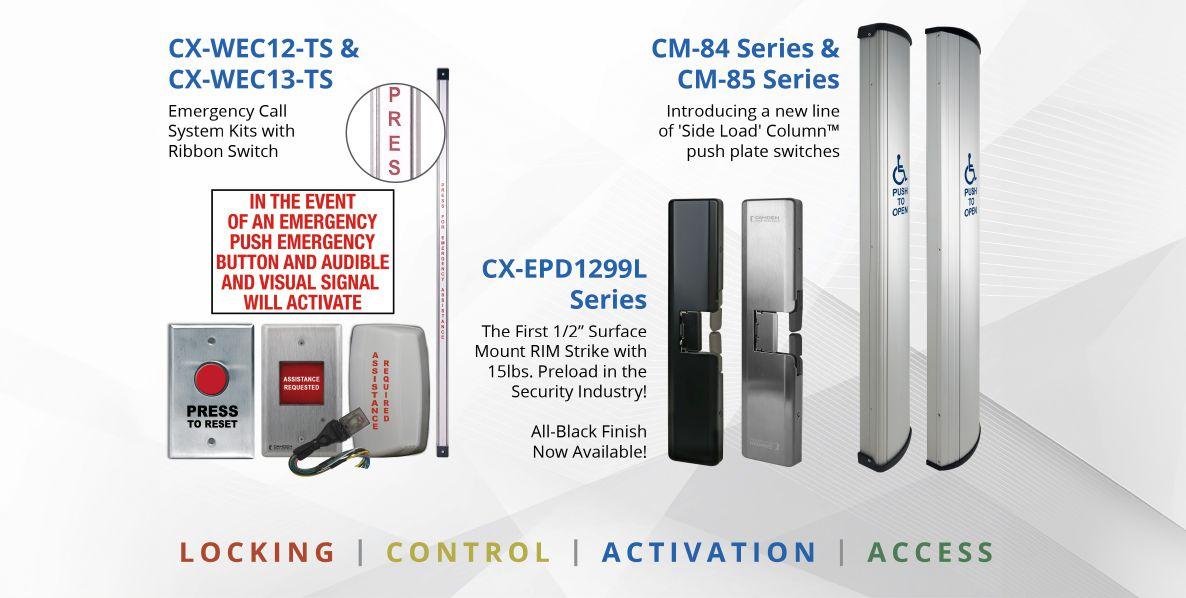 Camden supplies the very best selection and value of push/exit buttons, key switches, keypads, strikes, and maglocks, and also offers a range of product designs and features you won’t find anywhere else. From wireless, no-touch switches with up to 4 years of battery life, to the first surface mount RIM strike with up to 15
