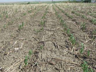 In this study, poor nodulation was observed throughout the growing season due to drought conditions, which would have limited N fixation. As a result, the highest rate of N (54 kg N/ha) produced the highest soybean yield even though the plant stand was reduced at the high N rate.