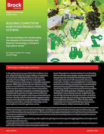 Accelerating agriculture technology transfer and adoption, removing barriers and exploiting opportunities are priorities for the agtech innovation sector. Researchers at Brock University’s Niagara Community Observatory (NCO) recently completed a multi-phase project to understand both the barriers that constrain and the drivers that promote agtech adoption and the pursuit of globally competitive production systems.