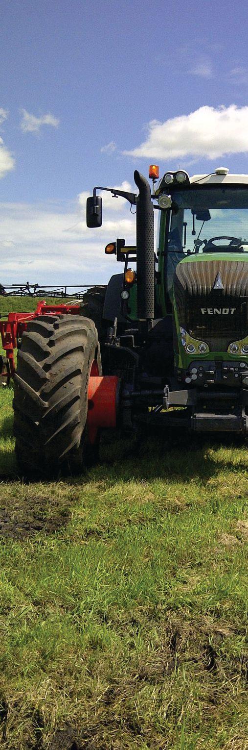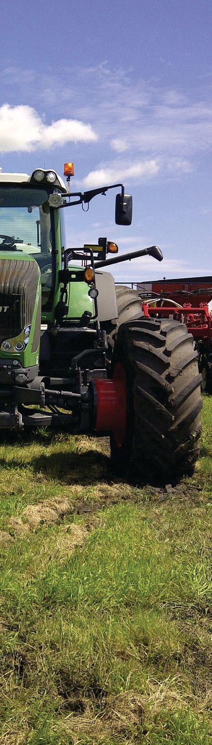 We bought a Fendt front wheel assist as our CTF tractor and would say that we are very happy with this decision. pentagon Farm Center was very good to us and exchanged back axles and got us the axle extensions for the front to get to a 120-inch wheel gauge. The tractor has performed well and has seen a lot of use. The fast highway speed has shaved down time but makes us feel like turtles in other equipment. The spools on the front have worked fine with no problems but we have a wheel seal to fix at the end of the season. If we do have any issues it is one of traction and in this very wet year we did have problems pulling the drill. The compact design of the drill is good for transport but can put the tractor and drill in wet spots at same time. We are not sure if this will be an ongoing issue or how we will address it. The tractor worked very well on the grain cart.