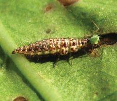 BOTTOM LEFT: This lacewing larva is eating an aphid.
