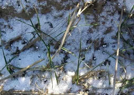 The crop eventually started coming around but was then hit with a 4-inch deluge of rain and hail that left drifts in the field on July 11. Hail damage came in at over 80% on the balance of the field. We were then forced to weigh some different options of how to proceed. It was decided that we would silage the northeast corner of the field that was the check part of the field (26 acres). Silaging happened about mid august after the field had a chance to dry a little. By this time the majority of the field had stooled out and left us with two stages of growth.