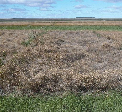 Vera thinks the stronger association between lodging and yield losses in flax, as compared to wheat, could be because pasmo is playing a part in the yield losses attributed to lodging.