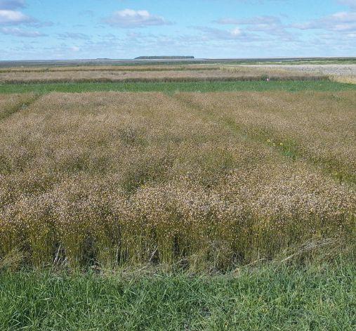 ABOVE: Researchers are assessing the effects of fungicides on lodging, pasmo, crop maturity, seed yield, seed weight and test weight of flax.