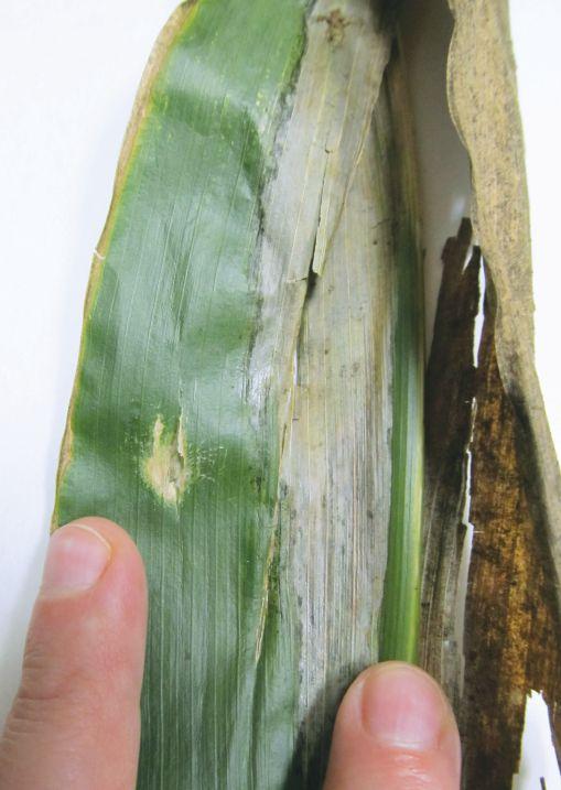 new inbreds and hybrids for Western Canada, and is screening them for tolerance or resistance to the disease. “At our [Goss’s wilt] nursery, inbreds and hybrids are fairly intensely screened with heavy disease pressure to identify and rank them for their tolerance. We select the best ones and build hybrids out of them, and then we screen those hybrids in our nursery and in field-scale trials,” Billing notes. “Within the five years we’ve been working with it in Western Canada, we’ve selected hybrids that have really increased the Goss’s tolerance in our overall portfolio.”