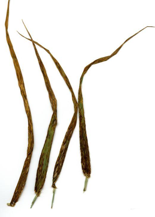 mycelia from the spores grow, resulting in a yellow stripe appearance following the production of spores that extends the entire length of the leaf. Production of spores takes place eight to 14 days after infection and are dispersed causing additional infections. Several infection cycles can occur and infect the middle and upper parts of the plant canopy, causing yield reductions.
