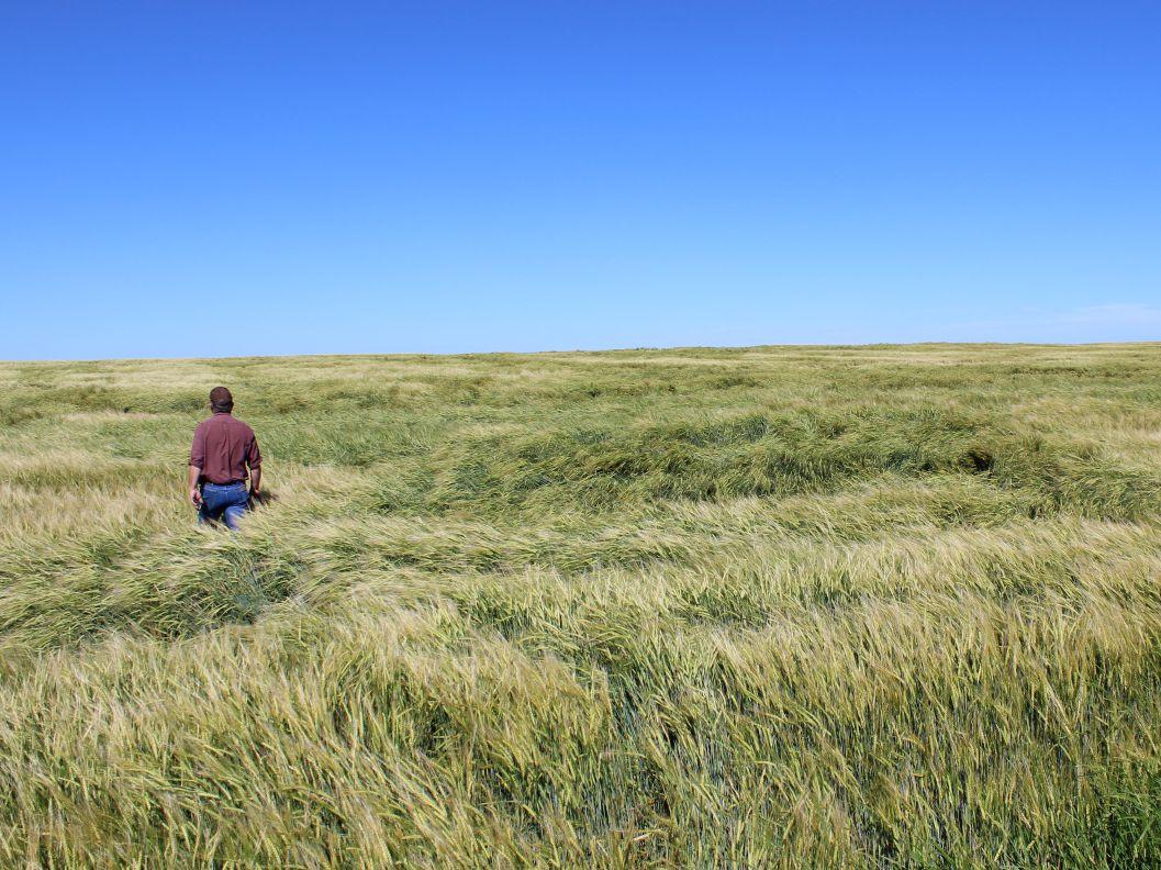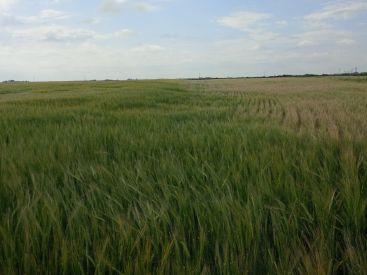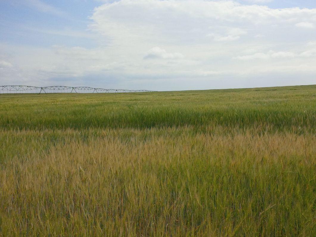 ABOVE: The difference in water availability (irrigation versus no irrigation) caused visible distinctions in these two areas of the same barley field.