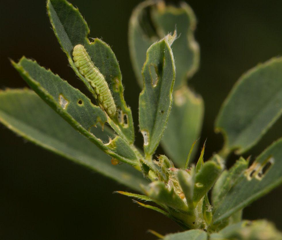 In alfalfa grown for seed, scout to assess the damage to leaf tips, and conduct sweep net sampling. The economic threshold is 20 to 30 third to fourth instar larvae per sweep, or 35 to 50 per cent of the leaf tips showing damage.