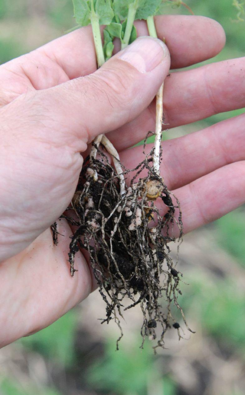 Crop rotation is also helpful. “If you grow peas on peas, for example, you are almost certain to get more disease, get it earlier, and have it causing more problems than if you have at least a one-year break or preferably a two-year break between pea crops.”